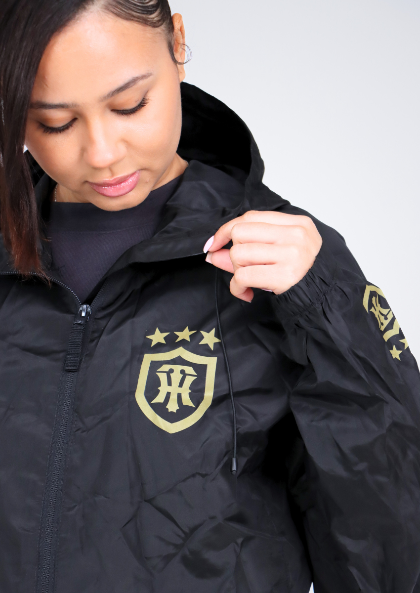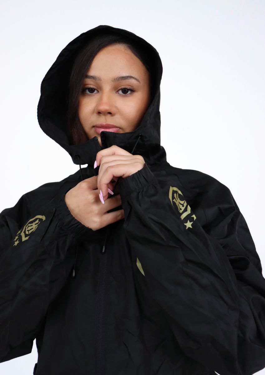 Stay ready for any weather with the Black Trapperholic Women’s Windbreaker. Built for the streets, it features water-resistant fabric and reflective gold Trapperholic logos on the chest, back, and arm – perfect for staying visible whether you’re biking, hiking, or running after dark. The hooded design delivers lightweight protection without sacrificing style, while the signature “Sworn to Achieve” quote along the waist keeps the look bold and driven.